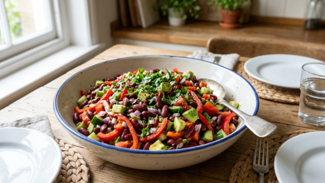 Ensalada de alubias rojas con cebolla morada