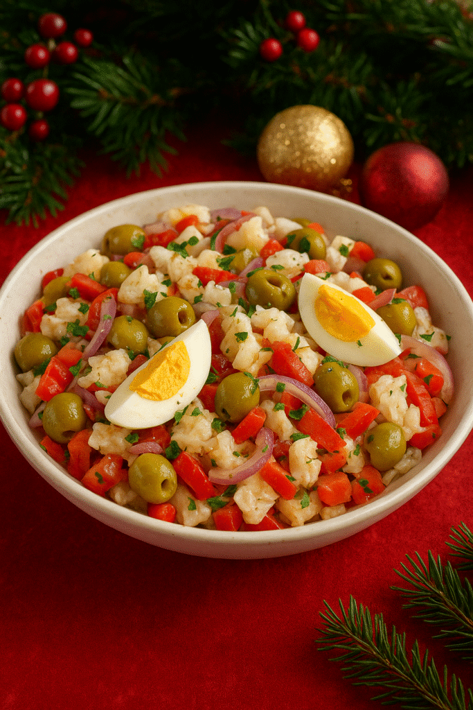 Ensalada de bacalao desalado con aceitunas