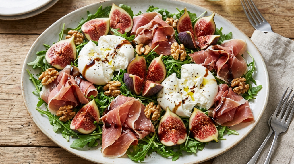Ensalada de burrata con higos y jamón