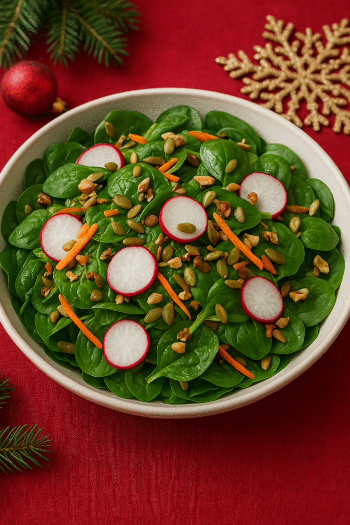 Ensalada de espinaca con rábanos y semillas
