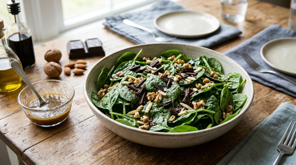 Ensalada de espinacas con chocolate negro