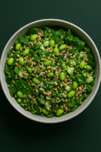 Ensalada de Trigo Sarraceno con Espinaca, Edamame y Tahini Ingredientes (2–3 porciones) Para la ensalada: 1 taza de trigo sarraceno (sin tostar, crudo) 2 tazas de agua 2 tazas de espinaca fresca picada 1 taza de edamame cocido (puede ser congelado) 1 pepino mediano picado 1/2 cebolla morada picada fina 1/4 taza de semillas de…