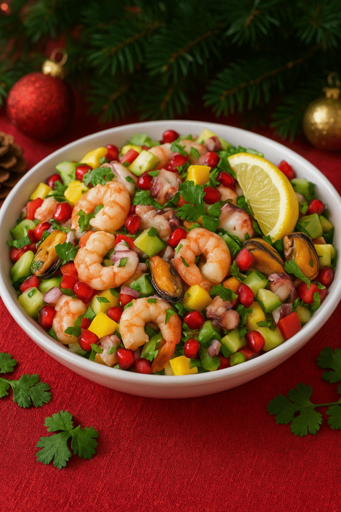 - Incorpora los mariscos ya fríos a la mezcla de vegetales.