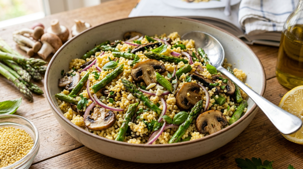 Ensalada de mijo con setas y espárragos