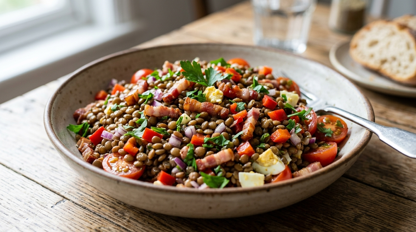 Ensalada de lentejas con panceta