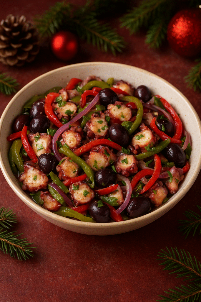 Ensalada de pulpo con pimientos y aceitunas
