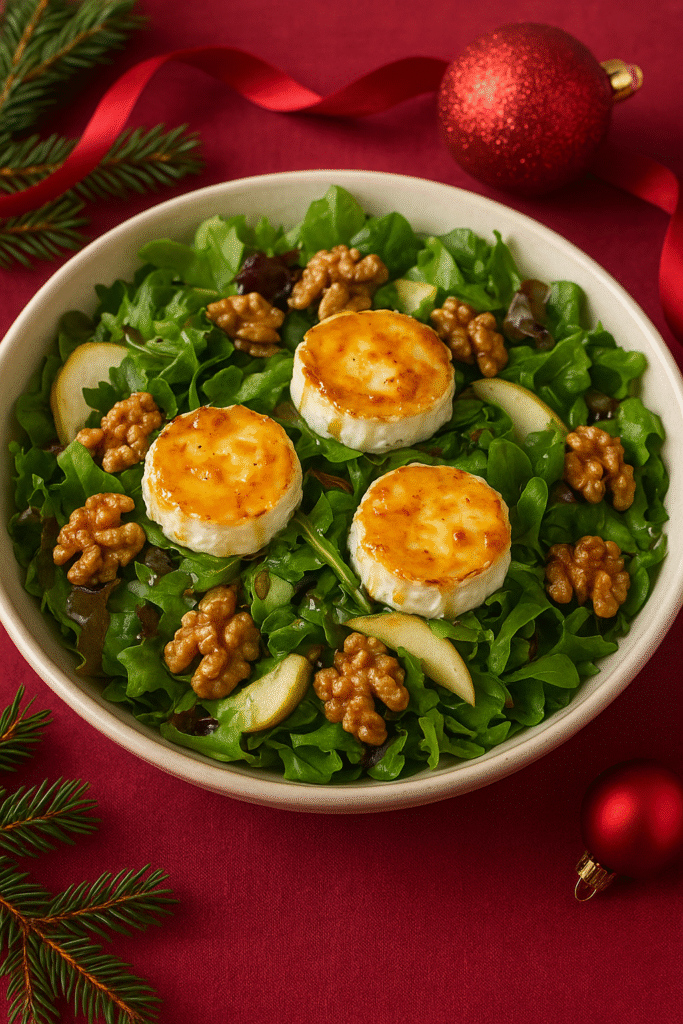 - Agregar el queso de cabra: Desmenuza o corta el queso y colócalo sobre la ensalada.