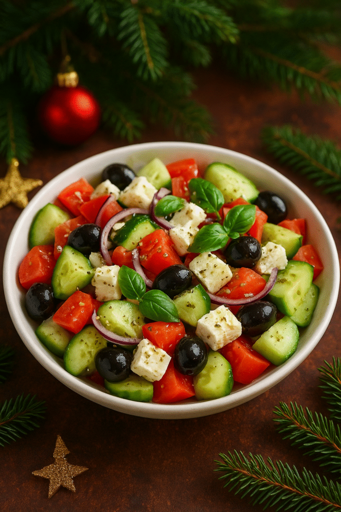 - Coloca los tomates, pepino, cebolla y aceitunas en un bol grande.