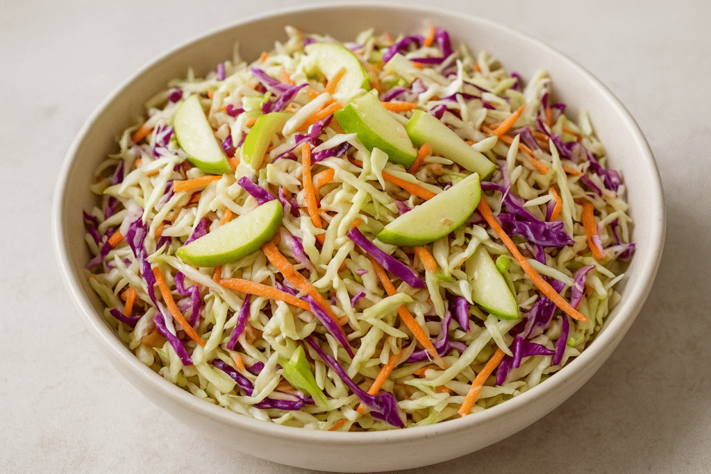 - Mezcla el repollo, la manzana, la zanahoria, las pasas y las nueces.