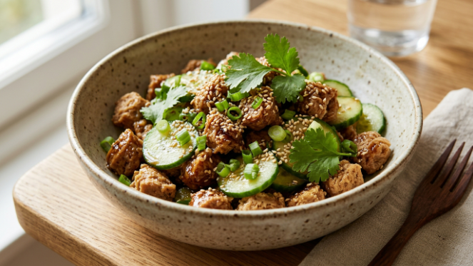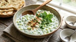 Ensalada india de pepino con yogur Ingredientes: (para 4 porciones) 2 pepinos medianos, pelados y picados en cubos pequeños 1 taza de yogur natural (puede ser griego para mayor cremosidad) 1 cucharada de cilantro fresco picado 1 cucharadita de comino en polvo (puedes usar comino tostado para un sabor más profundo) 1/4 cucharadita de chile…
