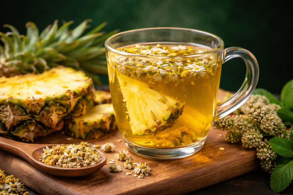 Infusión de cáscara de piña y manzanilla