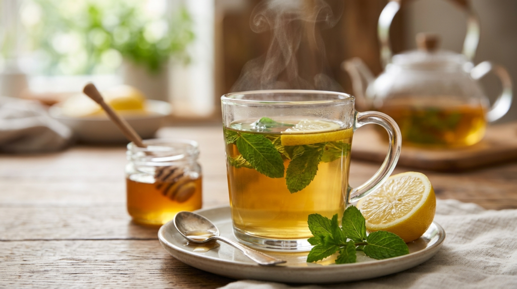 Infusión de Menta con Limón Ingredientes: 1 taza de agua 8–10 hojas frescas de menta Jugo de ½ limón (o 2 rodajas de limón) Preparación: Calienta el agua hasta que comience a hervir. Retira del fuego y añade las hojas de menta. Tapa y deja reposar durante 5–7 minutos. Agrega el jugo de limón o…