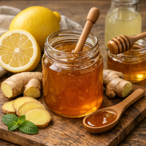 Jarabe casero de miel, limón y jengibre Ingredientes: 1 taza de miel natural 1 limón grande (jugo) 1 trozo de jengibre fresco (unos 5 cm) 1/2 taza de agua Preparación: Pela y corta el jengibre en rodajas finas. En una olla pequeña, hierve el agua junto con el jengibre durante 10 minutos. Retira del fuego…