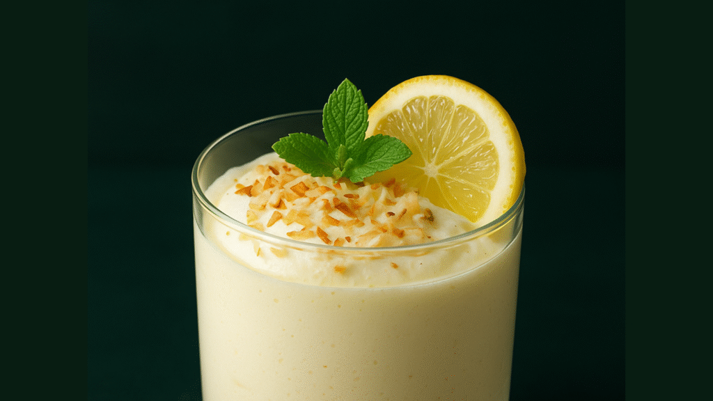 Antes de servir, espolvorea con coco tostado, un poco de ralladura de limón y una hoja de menta.